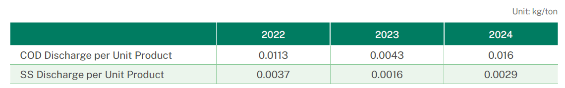 COD discharge per unit of product was 0.016 kg/ton and SS discharge per unit of product was 0.0029 kg/ton, stably fluctuating compared with the past few years. This shows that biological treatment of wastewater has been mostly stable, but we will continue to improve the performance of wastewater treatment to ensure compliance with regulatory standards.
